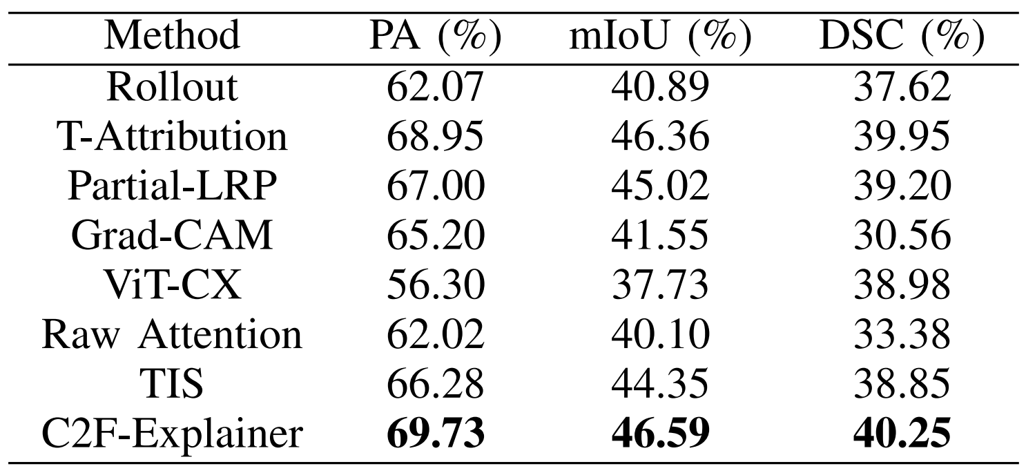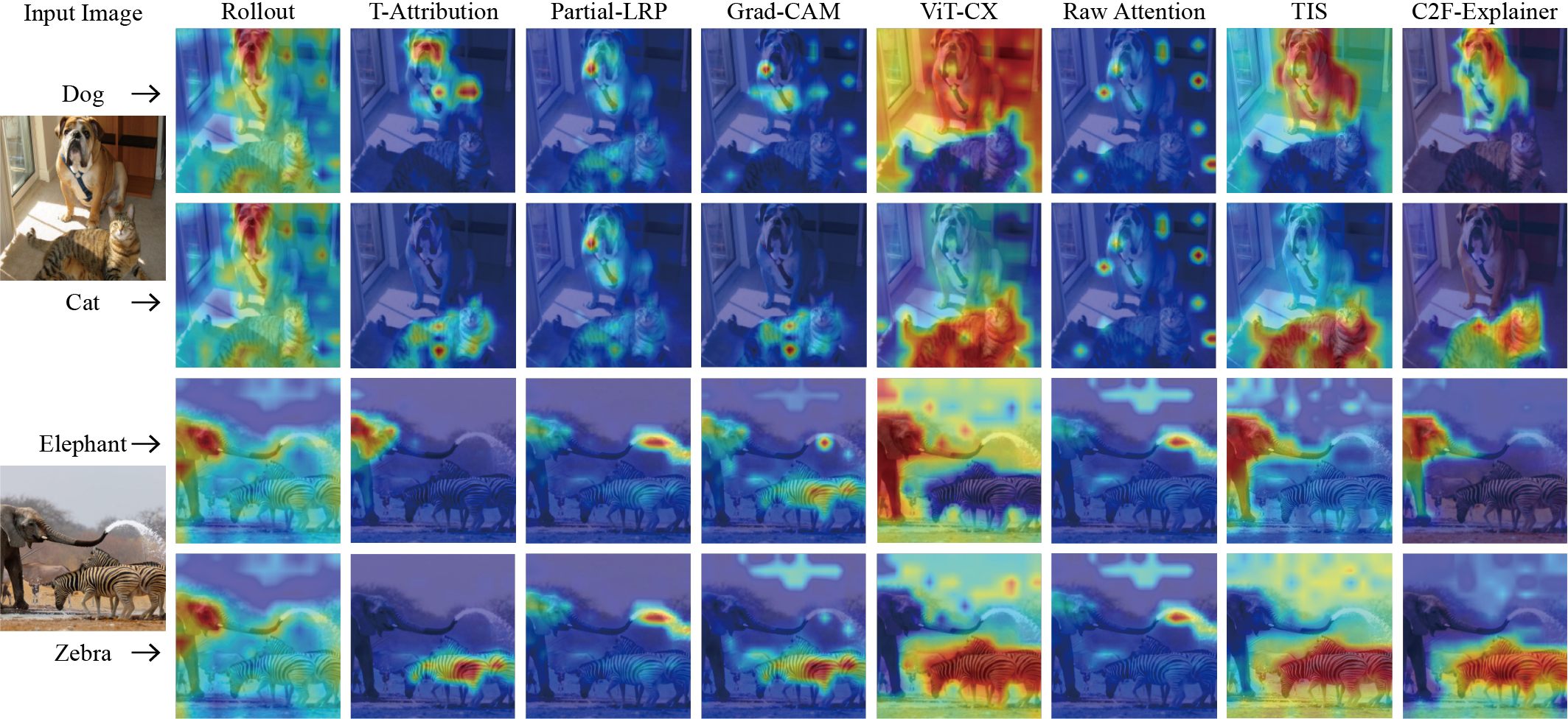 The proposed C2F-Explainer model is quantitatively and qualitatively evaluated on several datasets, including the ImageNet natural image dataset, the COCO 2017 natural image dataset, the VOC 2012 natural image dataset, and the BraTS brain tumor medical image dataset, to validate its performance. The experimental results show that the proposed method can achieve better explanation results than traditional interpretation methods.
