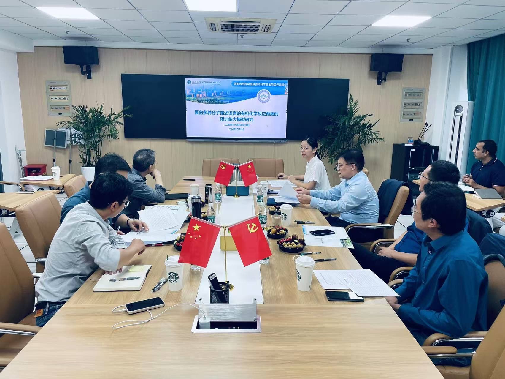 姜舒博士针对今年获批的国家自然科学基金青年基金项目进行了汇报,详细介绍了项目的研究背景、研究目标、研究内容、研究方法、项目可行性和预期成果。姜舒博士表示,将以青年基金获批为契机,潜心开展面向多种分子描述语言的有机化学反应预测的预训练大模型研究,带动公司其他青年博士确定项目选题、科学问题凝练,写出高质量基金申报书。与会专家对姜舒博士的选题进行了充分讨论并对其开题汇报给与高度评价。