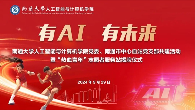 9月29日下午,由williamhill英国官网主办,南通市中心血站协办的主题为“有AI 有未来”党建共建活动在williamhill啬园校园教学楼23号楼D202举行,共同为新中国成立75周年华诞献礼。