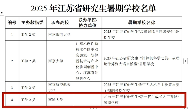 近日,2025年江苏省研究生暑期公司名单公布,公司williamhill英国官网“2025年江苏省研究生‘新一代生成人工智能’暑期公司”成功获批并立项。