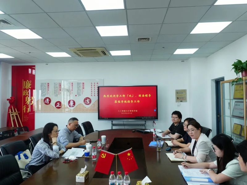 公司党委书记王舒雅对两位领导的到来表示热烈欢迎,对公司党委员工工作部、校团委一直以来给予公司的支持与指导表示衷心感谢,并陪同参观了公司院情墙、人工智能(科大讯飞)实验室、师生科研成果展和员工文化墙等,详细介绍了公司的发展历程、科研创新、学风建设、人才培养成果等方面的特色举措,全方位展示了公司蓬勃的发展活力。